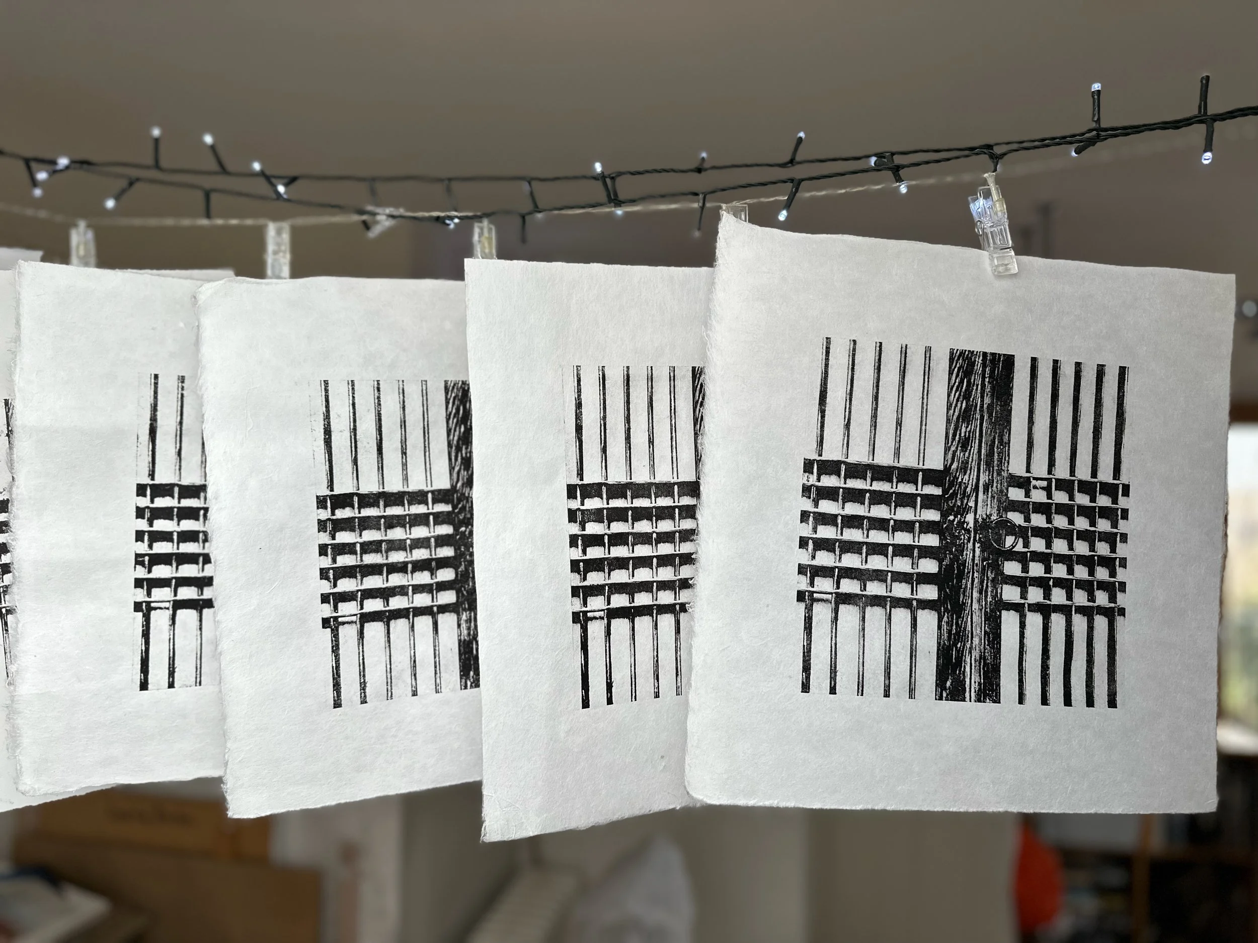 This lithograph has been printed with oil-based relief ink onto Hanji paper.